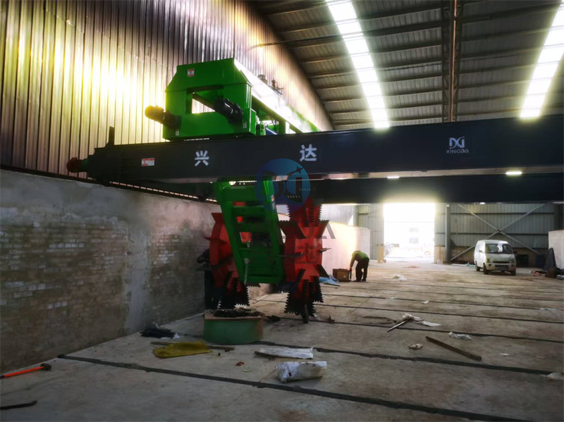 完全抵達(dá)現(xiàn)場(chǎng)后開(kāi)始有序的安裝有機(jī)肥輪盤(pán)式翻拋機(jī):輪盤(pán)式翻拋機(jī)是整套有機(jī)肥生產(chǎn)線中的一款有機(jī)肥翻堆設(shè)備。在有機(jī)肥生產(chǎn)線中擔(dān)當(dāng)起到翻拋物料的作用。輪盤(pán)式翻拋機(jī)設(shè)備采用中間鏈條傳動(dòng)機(jī)構(gòu),帶動(dòng)兩大直徑翻拋輪盤(pán),對(duì)稱翻拋,無(wú)死角可調(diào)速移位小車,左右位移,低能耗完成大跨距翻拋工作。輪盤(pán)式翻拋機(jī)適用于豬牛羊雞等畜禽糞便、污泥垃圾、糖廠濾泥、糟渣餅粕和秸桿鋸屑等有機(jī)廢棄物的發(fā)酵翻堆,廣泛應(yīng)用于有機(jī)肥廠、復(fù)混肥廠、污泥垃圾廠、園藝場(chǎng)以及雙孢菇種植廠等的發(fā)酵腐熟和去除水分作業(yè)。