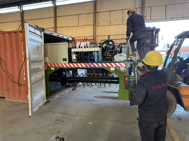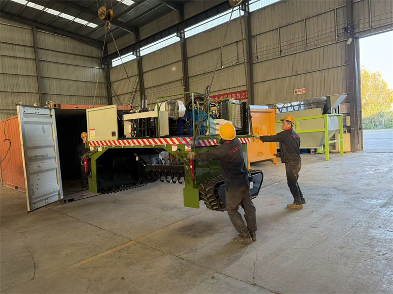啟航發(fā)往港口的5米寬的液壓履帶覆膜翻拋機的準備出廠:
