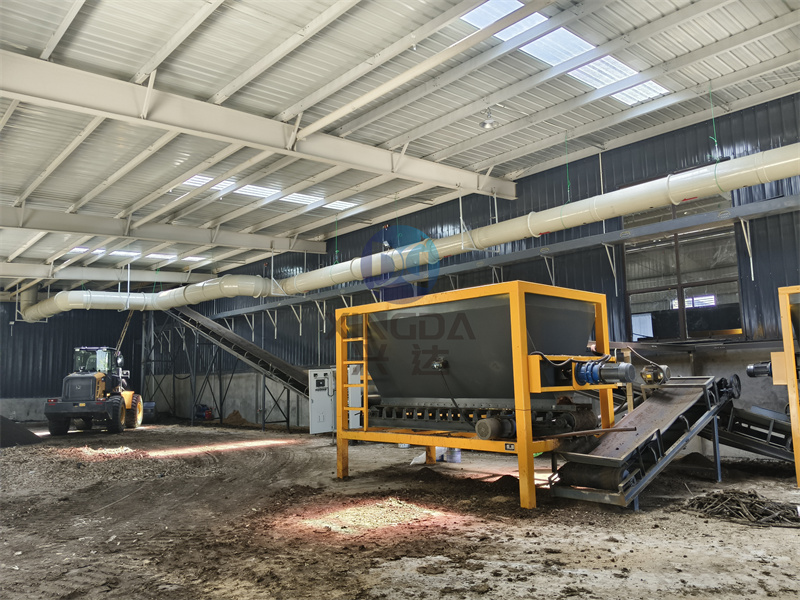 2、均勻撒入菌劑、翻堆發(fā)酵達(dá)到升溫、處臭、腐熟、殺滅雜菌草籽